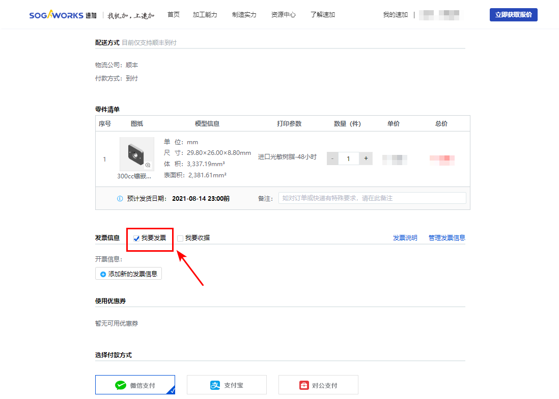 速加支持開具紙質(zhì)發(fā)票和電子發(fā)票。紙質(zhì)發(fā)票可隨貨郵寄給您,也可以單獨郵寄給您。您可在傳統(tǒng)詢價時選擇相應(yīng)的發(fā)票方式。