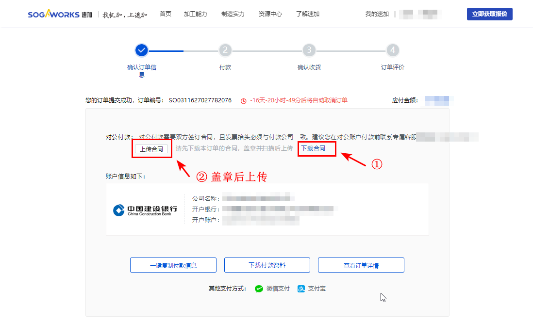 7. 點擊【下載付款資料】,可獲取對公轉(zhuǎn)賬信息