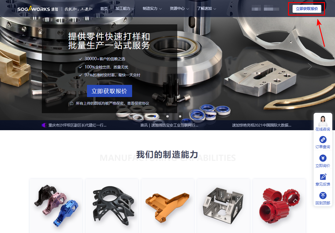 1. 在速加官網(wǎng)點擊【獲取報價】進入自動報價頁面,并上傳圖紙