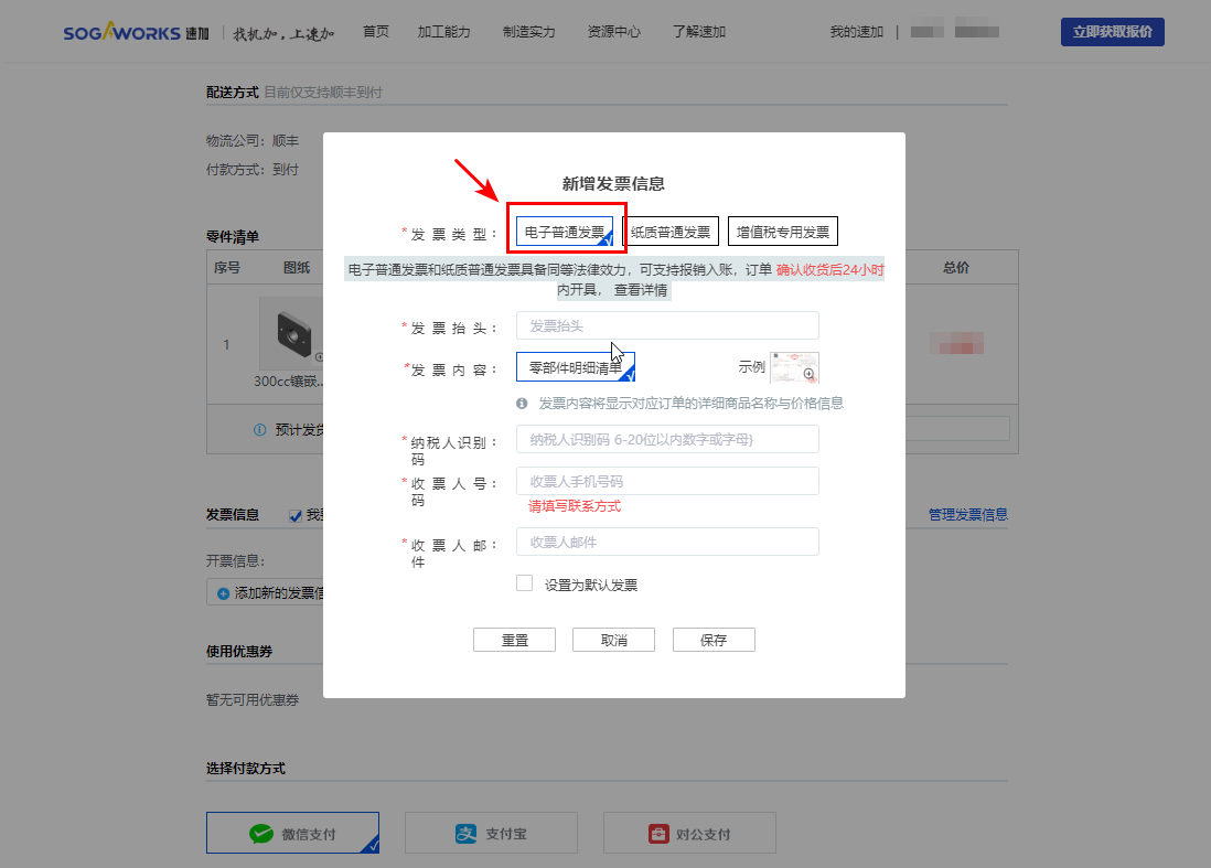 6.1 如您勾選【電子普通發(fā)票】,則速加默認為您開電子發(fā)票,電子發(fā)票您可在后臺下載