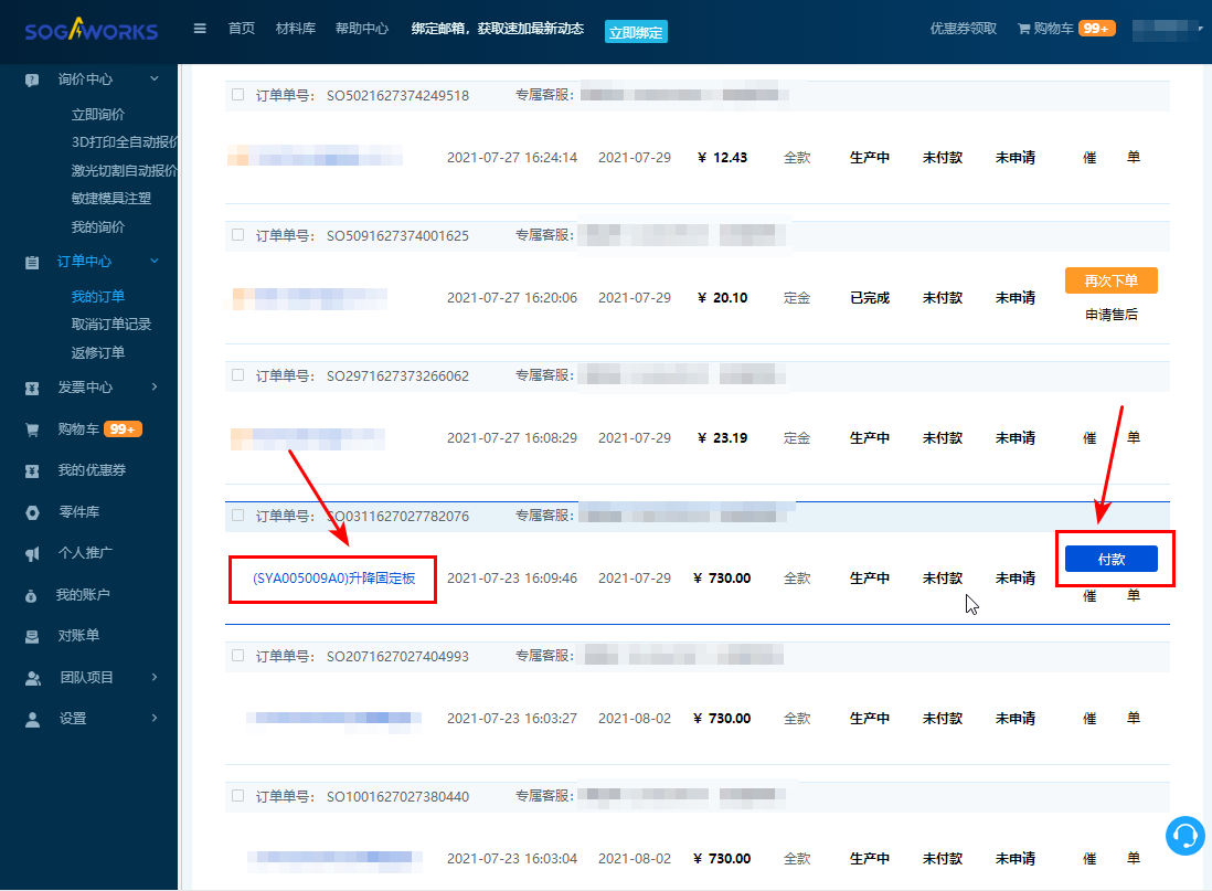 2. 點擊【訂單中心-我的訂單】,進(jìn)入我的訂單頁面